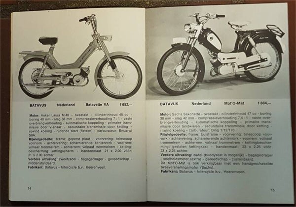 Op bijna elke pagina een foto met beschrijving van de brommers.