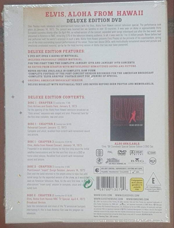 Deze 2 DVD set bevat al de opnames van de tv special Elvis - Aloha from Hawaii, meer dan vier uur aan materiaal, waaronder de volledige concerten van 12 en 14 januari en nooit eerder vertoond materiaal [digitaal geremasterd in 5.1 surround sound].