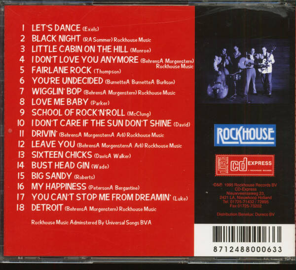 Tracks: Let's Dance - Black Night - Little Cabin On The Hill - I Don't Love You Anymore - Fairlane Rock - You're Undecided - Wigglin' Bop - Love Me Baby - School Of Rock 'N' Roll - I Don't Care If The Sun - Don't Shine - Drivin' - Leave You - Sixteen Chicks - Bust Head Gin - Big Sandy - My Happiness - You Can't Stop Me From Dreamin' - Detroit